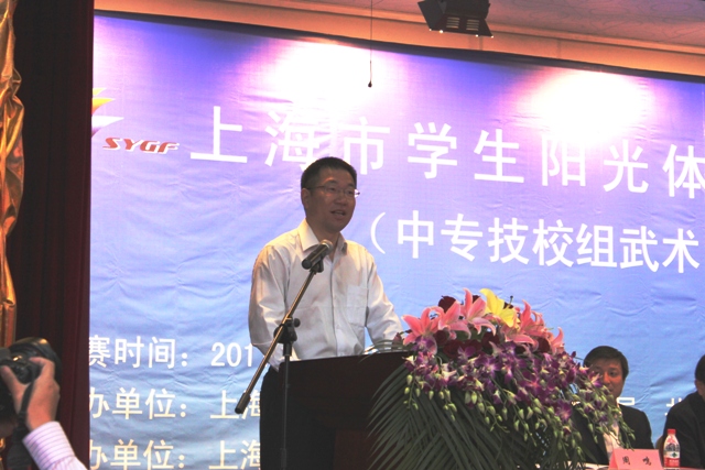 10月22日上午,2011年上海市学生阳光体育大联赛中专技校组武术比赛在我校隆重举行,上海市教委体卫艺科处处长王从春,上海体育学院副院长平杰,上海市学生活动管理中心主任徐尔等领导出席了大赛开赛仪式。