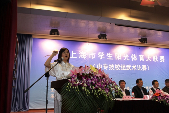 学生代表和裁判员代表宣誓后,由上海市教委体卫艺科处处长王从春宣布比赛开始。
