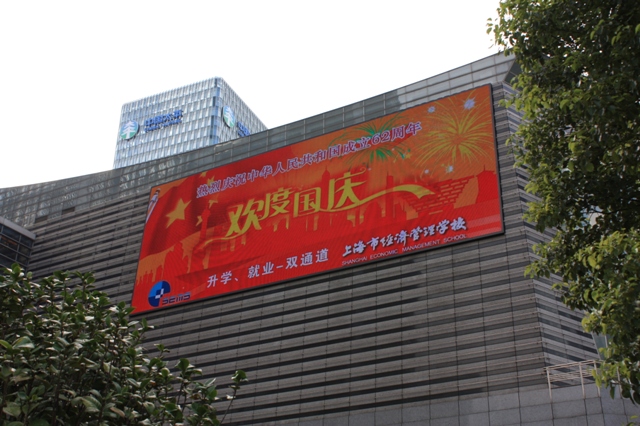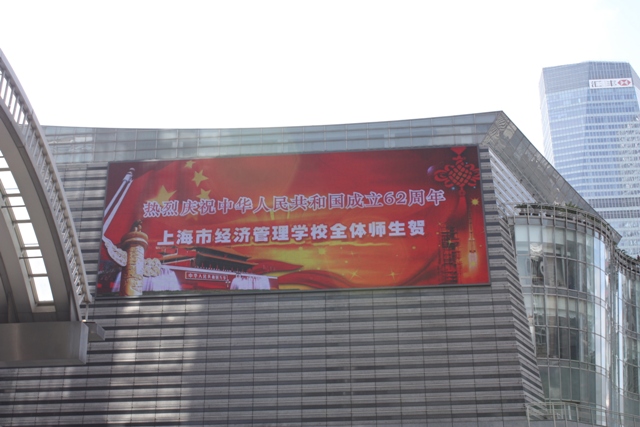 2011年国庆节期间,我校得到媒体大力支持,在陆家嘴金茂大厦表达了我校热烈祝贺祖国成立62周年的爱国之情,时间从9月30日到10月8日。
