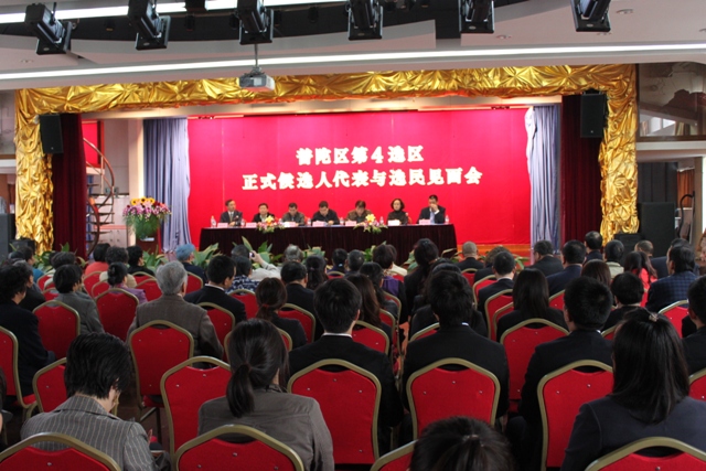 11月10日下午2点,普陀区第4选区正式候选人与选民见面会在我校大礼堂隆重举行。长寿街道领导方元升、陈小军,长寿居委会书记商永刚、正式代表候选人出席了见面会。选区选民参加了见面会