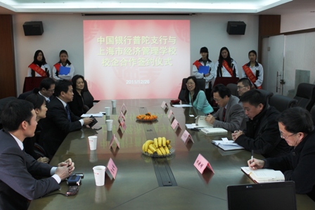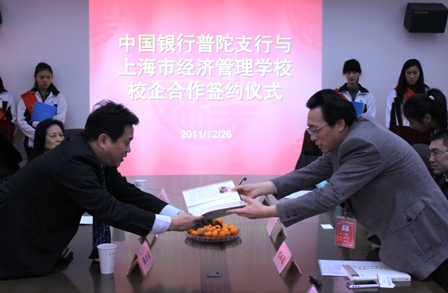中国银行上海市普陀支行张捷副行长作了发言,他表示企业需要富有专业技能的人才,学校能培养出职业技能人才,学生能得到发挥所长的工作岗位,是多赢的局面,为此充满期待。