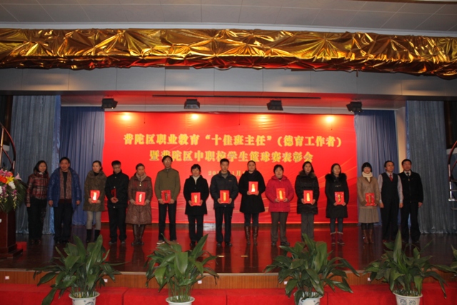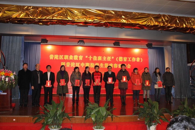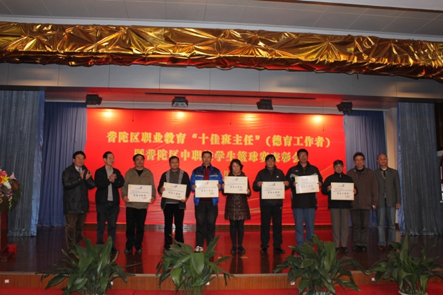 此次表彰会上,我校俞璟洁、石婕健两名教师获得了区“十佳班主任”称号,我校李兵老师获得了德育工作风采奖,在区中职校学生篮球赛上获得了团体三等奖和突出贡献奖。