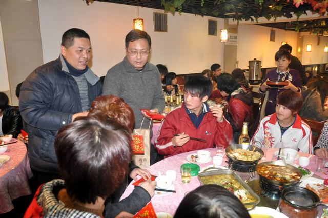 元月20日,学校组织对口支援合作办学的56名云南同学共庆新年。校领导及有关部门及实习单位领导一并出席了欢乐祥和喜气洋洋的团年饭活动。席间,沈林副校长代表学校向云南同学表示了新年祝贺和亲切慰问,并发放了亲情电话卡和旺旺大礼包。 同学们纷纷表示,虽然远离家人,第一次在外乡过春节,但在经管校同样感受到了家一样的亲情和关怀,他们一定会用优异的学习和实习成绩回报学校和家长。