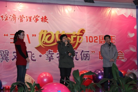 严冬已去,春回大地,连日的春雨霏霏,阴霭的天空似乎感受到了节日的欢快,露出了温熙的阳光。3月9日下午,校党总支书记兼工会主席沈晓峰、副校长翁昊年、副校长沈林和全体教职工一起,在布置温馨的学校大礼堂共庆佳节,参加学校纪念“三•八”妇女节102周年塈“比翼双飞、幸福伉俪”联欢会活动。