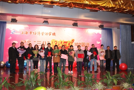 美好的时光总是短暂的,活动到了尾声,7位男教工向7名女教工献上了代表学校、代表全体教职工以及他们的自己衷心祝福的玫瑰花束,共同庆祝“三•八”妇女节。校党总支书记兼工会主席沈晓峰、副校长翁昊年、副校长沈林代表学校党政工团向七对双职工家庭分别颁发了荣誉证书:陈梅莉、秦晋家庭——爱校敬业奖;陈慧慧、宋庆华家庭——励志进取奖;廖盈、魏刚家庭——情深似海奖;徐岚、戴明慧家庭——给力服务奖;席行知、柳生开家庭——全力投入奖;郑燕琦、叶通家庭——妇唱夫随奖;周蓉莹、张伟罡家庭——示范表率奖。整场联欢活动,展示了学校教职工的辛勤工作和家庭的温馨,也拉近了大家的心灵,在主持人的祝福声中,大家离开了礼堂,带着愉悦,怀着幸福投入了新的工作和生活中去。