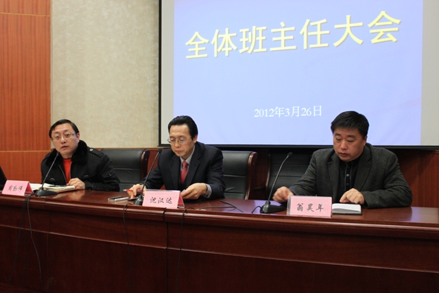 3月26日,在我校会议中心召开了三月份全校班主任工作会议,全体班主任共同参加,沈汉达校长、翁昊年副校长出席了工作会议,会议由学生处周勤伟主任主持。