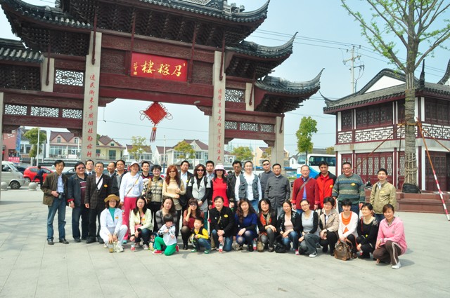 下午,大家乘车又赶赴浦江镇召家楼游览。召稼楼,又称召楼,有近800年历史,是元末明初号召农耕垦荒的小钟楼,为浦东垦荒第一楼,堪称上海农耕文化发祥地。历经明、清、民国时代的发展衍变,逐渐形成江南水乡集镇,至今保存着大量明清时期古建筑,以及相互关联的街巷、桥梁和水系,是上海32个重点的历史文化保护区之一。召稼楼又名召楼镇,起源于元朝初期,明朝工部右侍郞谈伦子田,曾在此建楼鸣钟以召农耕,因此名曰“召稼楼”。解放前,浦东有四大名镇,俗话叫“金大团,银新场,铜召楼,铁周浦”,可见在历史上召楼比当年号称“小上海”的周浦名声还要响。一进镇踏上老街的青石板路,恍惚身处明清时代。不经意间,转了个弯,眼前骤然呈现一幅使人心旷神怡的水墨画。抬头远望,只见粉墙黛瓦,飞檐斗拱,矗立蓝天。明清建筑的骑马墙、荷花墙层层叠叠,气势非凡。老街两旁店铺林立,酒旗飘拂,行人摩肩接踵。一条通向浦江的活水河犹如白练从天而降,从老街正中横穿而过,在蓝天白云下,蜿蜒绵绵,不知所至。河岸两旁,有长廊沿河而筑,红灯高挂,游人有的倚廊观景,有的饮酒喝茶,笑语喧哗,一派升平气象。河岸边柳树摇曳,柳丝轻点水面好似轻吻。河中画舫来回游弋,船橹随着船娘腰肢的扭动在水面划出层层涟漪。一座座石桥倒映水面,如长虹飘落人间。漫步河岸,移步换景,可以说步步是景。站在桥上,放眼望去,不由人浮想联翩,好一幅清明上河图!