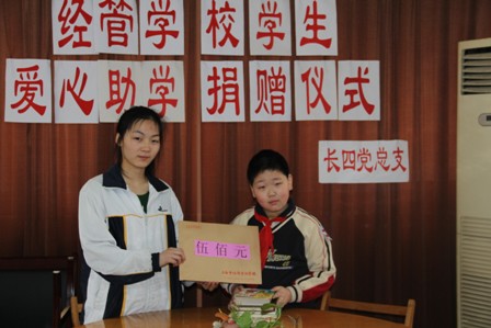 4月13日,经过老师的联系,在长寿街道长四居委寻找到两个贫困学生,在居委会举行了简单的捐赠仪式上,心理协会代表将所有善款全部捐赠于两位学生。学生当场表示,一定要好好学习,将来用自己的才能报效社会。看着孩子们可爱的笑容,我们心里也被这温暖填得满满的。