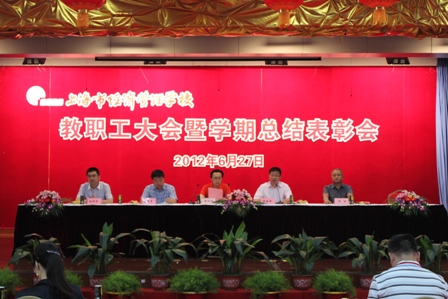 6月27日上午,在我校大礼堂隆重举行了教职工大会暨学期总结颁奖会。