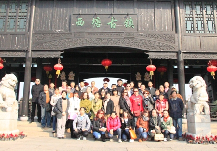 西塘历史悠久,人文资源丰富,自然风景优美,是古代吴越文化的发祥地之一。“春秋的水,唐宋的镇,明清的建筑,现代的人”,是对西塘最恰当不过的形容。西塘与其它水乡古镇最大的不同在于古镇中临河的街道都有廊棚,总长近1300多米。这样在西塘旅游,雨天淋不到雨,晴天太阳也晒不到。古镇占地面积1平方公里,镇区内9条河道纵横交织,将古镇分为8个区块,有27座古桥将市镇连通。古镇在春夏秋冬、晴阴雨雪的长久年代里,始终呈现着一幅“人家在水中,水上架小桥,桥上行人走,小舟行桥下,桥头立商铺,水中有倒影”的不断变幻的水乡风情画。这里的居民惜土如金,无论是商号或是民居、馆舍,在建造时对面积都寸寸计较,房屋之间的空距压缩到最小范围,由此形成了120多条长长的、深而窄的弄堂,长的超过百米,窄的不到1米,形成了多处“一线天”。中午,大家一起赴金山农民画村就餐,餐后又欣赏了当地的农民画作与风情。尤其是首次参加工会活动的外聘职工,更是对学校的关爱表示衷心地感谢。