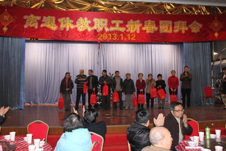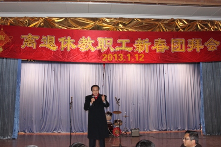 冬日料峭,连日阴霭,难得地有了一个风和日丽的小阳春天气,2013年1月12日上午在学校大礼堂,学校传统的离退休老同志迎春团拜会开始了。学校校长沈汉达教授、党总支沈晓峰书记、副校长翁昊年、副校长沈林、校长助理张伟罡等学校有关党政领导联袂出席,同庆新春。