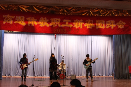 团拜会由校党总支书记兼退管会主任沈晓峰同志主持。首先由学生们给与会的离退休老同志表演了精彩的文艺节目:有二胡演奏、现代舞表演、小组唱、戏剧片段、学生乐队演奏等。在学生的文艺演出中学校党政领导还为与会的老同志抽出了丰盛的奖品,赢来了阵阵掌声。文艺表演之后校长沈汉达教授代表学校党政领导向全体与会的离退休老同志致贺词。沈校长首先向与会的离退休老同志简要介绍了学校一年来建设发展的辉煌成就,表达了学校对离退休老同志的拳拳关爱之情,并祝愿全体离退休老同志新春快乐、身体健康、万事如意。学校党总支书记沈晓峰同志亦代表学校向与会的离退休老同志致以新春的问候。之后学校党政领导与离退休老同志们一起举杯共贺、同庆新春,共进午餐。席间大家频频举杯,共贺新春,感谢学校党政领导对离退休老同志的关爱,共祝学校蒸蒸日上,取得更辉煌的成就。