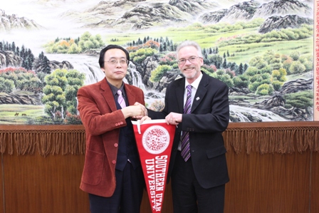 等一行来校访问交流。沈汉达校长出席接待会,并在会上与南犹他州大学领导进行了深入交流。