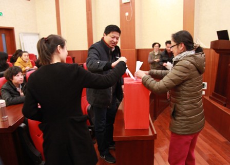 首先杨顺莉书记从政治核心作用、精神文明建设、三重一大、关心群众等四个方面汇报了近年来党总支工作情况,并对下一步党总支推进方向做了规范指示,要求领导班子、党员干部讲规范有创新、讲奉献有担当、讲正气有奖惩。随后全体在座党员进行了党总支换届选举投票。投票结束后,学校四个党支部分别派出代表作了“党员干部如何践行群众路线”主题演讲。沈汉达校长宣布选举结果:学校党总支书记为杨顺莉,党总支委员为沈汉达、翁昊年、沈林、张伟罡。最后沈汉达校长作总结讲话,他指出作为领导班子和党员干部一定要做到四点:一、坚定信念坚持党性;二、坚持为人民服务宗旨;三、坚持长期践行群众路线;四、坚持发挥党员模范带头作用。大会在热烈掌声中落下帷幕。