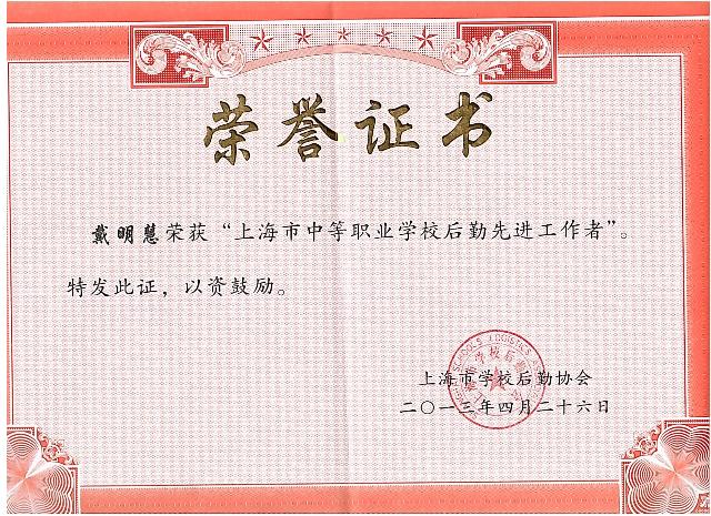 我校戴明慧老师荣获“上海市中等职业学校后勤先进工作者”光荣称号