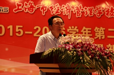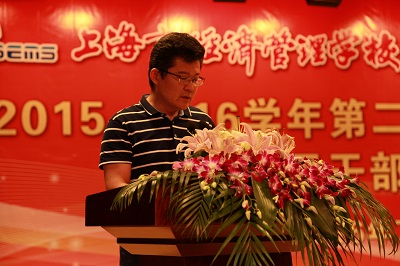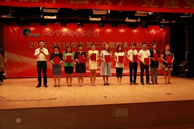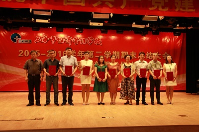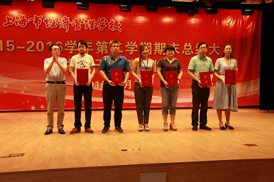 2016年7月1日,上海市经济管理学校在大礼堂隆重举行2015-2016学年第二学期期末总结大会暨中层干部聘任仪式,全体教职工参加了会议。会上,校长沈汉达教授与新任中层干部签约并颁发聘书;表彰了二工大优秀党支部和优秀党员、2016年全国职业院校技能大赛获奖指导教师、示范校建设项目组及2016年校学术论文评比一、二、三等奖。最后,校长沈汉达教授致辞。期间,教师代表们带来的精彩节目《教师的一天》、配乐诗朗诵《美丽转身》、中日德英四文版《幸福拍手歌》获得大家一致好评。