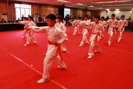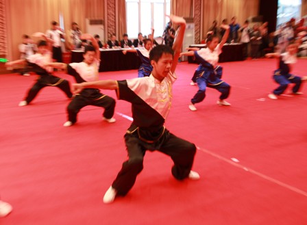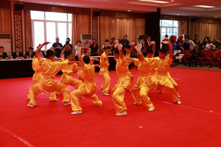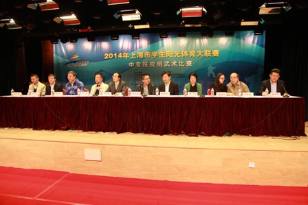 随着王丛春主任宣布2014年上海市学生阳光体育大联赛武术比赛开始,比赛拉开了序幕。