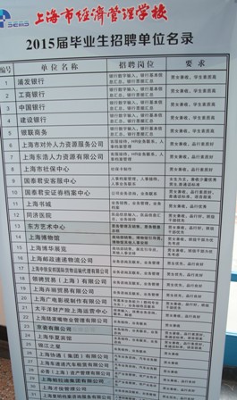 本次招聘会参展企业数量多、质量好、行业分布广,共计39家知名企事业单位参与。就业岗位根据我校的专业设置与人才市场的脉动组织对外招商,有面向财经系学生的浦发银行、工商银行、中国银行、建设银行、同济医院等单位;面向商务系的有上海书城、上海博物馆、上海市社保中心、上海陆家嘴物业管理有限公司、上海中铁安邦国际货物运输代理有限公司等;东方艺术中心、上海银联商务有限公司、上海广电影视制作有限公司、京瓷有限公司等单位着重于计算机系学生。招聘会场内人头攒动、场面热烈。学生普遍感到现场提供的就业岗位与其所学专业契合度高,这极大增强了他们的信心,促使他们积极与用人单位进行双向交流,勇于展现自己的才华。我校严格的教育教学制度,培养人才的高效性,如今已树立起坚实的教育品牌,众多企业一致认为我校的学子善动手、肯吃苦、可培养,对自身的定位比较客观、综合素质良好、可塑性较强、专业技能比较扎实。