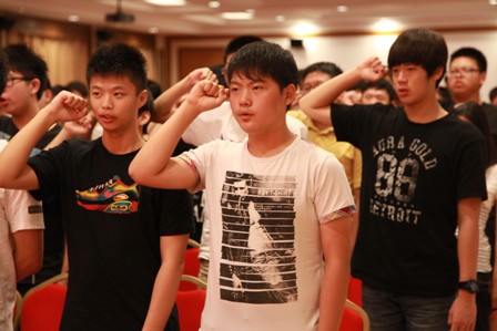 最后,新生庄严宣誓,立志成为经管人,将遵纪守法,恪守校训,刻苦学习,积极实践,勇于探索,发愤图强,争取成为有用人才。无愧于时代!无愧于青春!