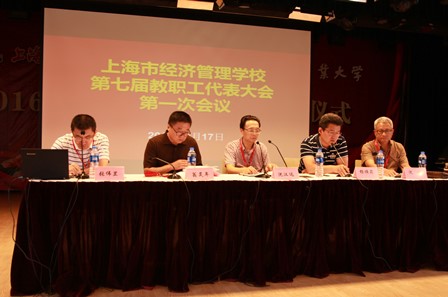 日下午,我校在大礼堂召开了七届一次教代会,校长沈汉达教授、党总支书记杨顺莉、副校长翁昊年、沈林和张伟罡出席会议,全体教代会代表参加。会上讨论通过了《上海市经济管理学校