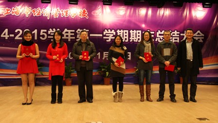 1月21日上午,我校在大礼堂隆重举行了2014—2015学年第一学期总结大会,校长沈汉达教授、党总支书记杨顺莉、副校长翁昊年、副校长沈林、副校长张伟罡出席,全体教职工参加了大会。