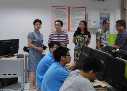 首先,沈校长一行人实地详细考察了示范校各实训室建设,并现场指导、处理实训室建设的问题。随后,各项目负责人从项目概况、建设进程、成果亮点、存在问题、冲刺计划等方面向与会人员进行了汇报,领导和专家逐一对每个项目的建设内容及工作成果提出了要求,对各项目组提出的问题给出解决建议。