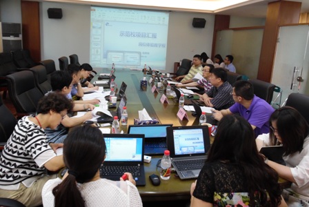 2015年6月23日,我校举行示范校建设阶段总结会。会议由沈汉达校长主持,全体校领导出席了本次会议,并邀请专家王尔菲、王珺萩现场指导,示范校建设十八个项目的项目组长在会上进行了阶段性汇报。