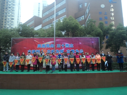 2015年渐行渐远,2016年翩然而至。1月4日上午,我校举行了2016年首次升旗仪式,以此迎接新年的到来。校长沈汉达教授,党总支书记杨顺莉、副校长翁昊年、沈林、张伟罡以及全校师生参加了升旗仪式。