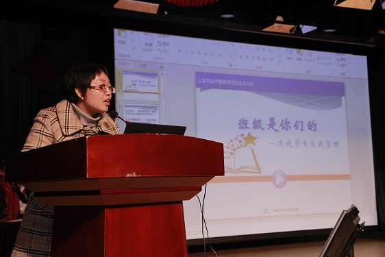 论坛上,钱犇老师以《借鉴日本文化管理班级——从“牵绊”“迷惑”和公的意识谈起》介绍了日语班带班经验;姚卫老师总结了2年班主任经历,从相互信任、高效沟通和有效管理,作了《“三问”得与失》的发言;杜时英老师分享了《心与心,不再遥远之有效沟通》,成功架起了师生沟通的桥梁;沈引老师对《行为偏差学生的转化》进行了工作总结,并通过成功案例的说明要点;朱婉霞老师以《班级是你们的——浅谈学生自我管理》展现了新任班主任的成长历程;王媚老师用《这是一场没有硝烟的战争》形象比喻了育人过程;陆汶老师通过《借东风——用心理学解决班主任工作中的难题》展示了用心理学理论育人的高效方法和途径;陆丽娜老师以《以美丽引领班风,以活动塑造团队》推进了班级建设,收获了良好效果;宋庆华老师从《中职校优秀班集体的建设策略》出发,理论与案例并举,让人耳目一新。