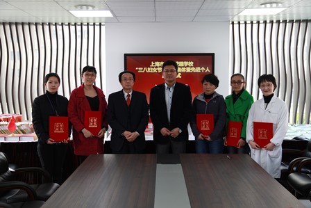 三月里,校园一片春意盎然。2016年3月7日中午,学校召开了纪念国际“三八”妇女节106周年暨“三八红旗集体”、“三八红旗手”先进表彰会,校长沈汉达教授、校党总支书记兼工会主席杨顺莉和荣获先进荣誉称号的女教职工代表参加了会议。