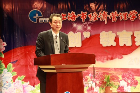 仪式上,沈汉达校长致开幕词。沈校长首先代表学校对在场的各位领导、来宾表示热烈欢迎。沈校长指出,职业教育作为经济社会发展急需人才培育的重要领域,承担着培养具备创新意识和创业能力的“双创”人才的使命,经管校作为上海市中等职业改革发展特色示范校一直致力创新发展,在推进“双创”的道路上,经管校与行业协会携手前行,实现了优势互补、资源整合,跨界合办了“双创”教育实践基地,意义深远。沈校长表示,在基地的启动时起点,经管校必将与行业协会深入合作,发挥基地育人能效,推动区域经济发展,促进上海经济转型,助力全国深化改革。