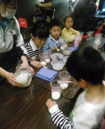 通过短片和解说,家长和学生们了解到了奶茶的整个制作过程并亲身动手体验,再通过企业模拟经营沙盘,让小朋友们亲身体验做一名企业家,来经营自己的公司,培养孩子们这方面的天赋。学生志愿者们的热情招待获得了家长和孩子的一致好评,互动交流热烈。活动结束后,孩子们自觉将桌子上的杂物收拾干净,从中也锻炼了不少,成长了许多,也十分期待下次的活动。