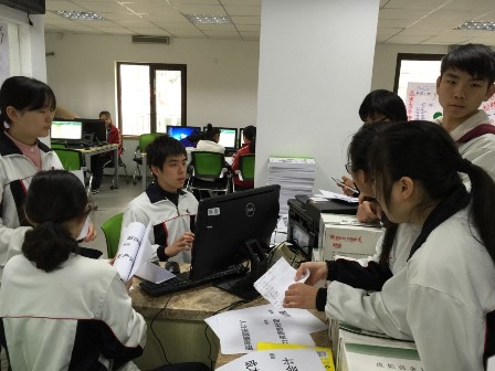 “记住,这段时间你们不是来上学的,你们是来上班的!”。从实训教师的一句话就体现出一种角色的转变。同学们从竞选单位的CEO开始,并招聘公司的人力资源部经理,制作海报来招聘人才。他们会花一天的时间组建成各自的团队,设计一个属于自己公司的商标。而填制凭单、记账凭证、物料卡、一系列表格就是他们每天面对的工作。