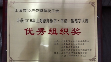 我校工会获2016年上海市教师板书、书法、钢笔字大赛优秀组织奖。