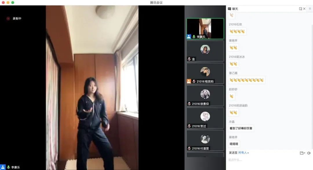 疫情的突然来袭,班主任对学生的了解该怎么继续,班集体的凝聚力该怎么保持?班主任和班委们商量后,决定利用线上午自习,每天除了由发布实时通知外,还请一位同学进行15分钟左右的才艺展示。表演者需要提前告知负责班委表演内容。就这样,午间“个人秀”开播了!班级里的文艺“积极分子”们带头报名,有的展示了舞蹈,有的表演了古筝。班主任又号召其他同学:不用一定非要才艺表演,可以展示兴趣爱好,最主要的是展示自己。这下节目变得更加丰富多彩起来,有直播画画的,有展示偶像唱片的,背诵德语文章的,表演吃播的。同学们边看边赞叹连连,直呼不知道原来某某同学这样有趣,有着这么精彩的爱好。慢慢地,一开始不愿意参加的同学也开始表演了,每次午间活动同学早早地就等着开始。现在,不但班主任对学生的动态更加掌握,同学们每天还能拥有一些快乐的瞬间,班集体的融合更加紧密了。那一刻,尽管隔着屏幕,但师生的心已经在一起了!