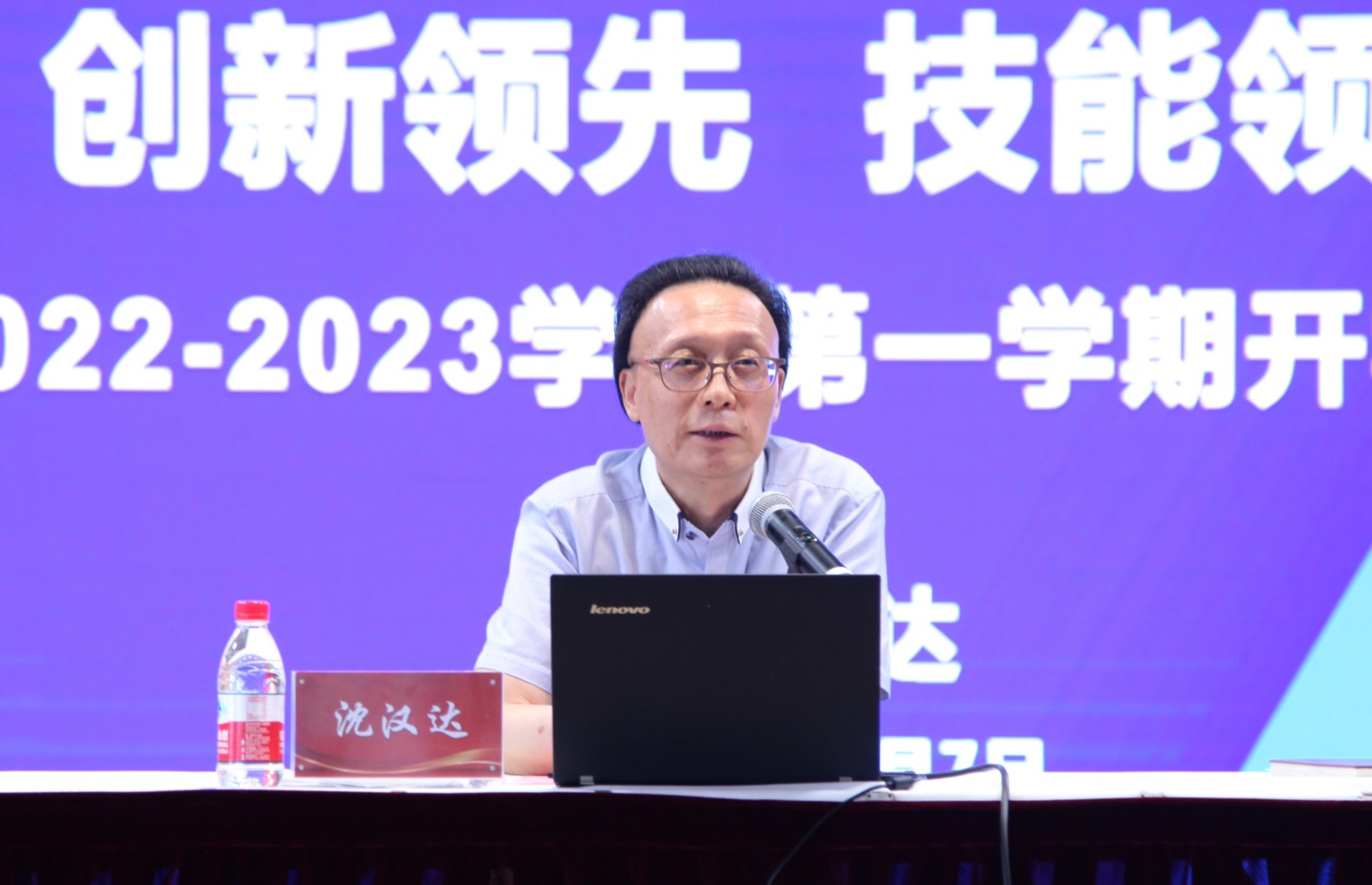 我校校长、全国职业教育杰出校长、上海市特级校长沈汉达教授以《党建领航 文化领衔 创新领先 技能领跑》为题作了开学动员报告。沈校长围绕“形势与任务”“出击与养静”两个方面对大家进行了开学动员,他希望全体教职员工要“心中有谱、心中有底、心中有数、心中有法、心中有责”,要做到“疫情要防住、学生要稳住、安全要保住、底线要守住、使命要记住、目标要锚住、重点要锁住、质量要把住、机遇要抓住、挑战要接住、疑难要盯住、压力要顶住、歪风要堵住、邪气要刹住”。