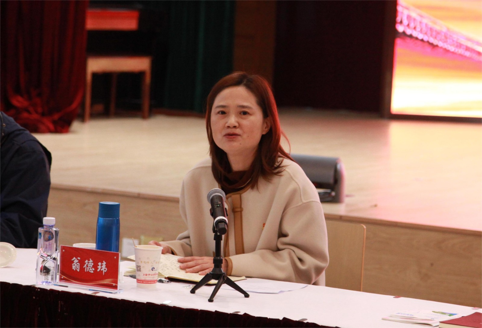 上海第二工业大学党委副书记、纪委书记翁德玮讲话。翁书记对三所中专校党政领导认真学习二十大精神、结合主题充分准备研讨予以肯定。她讲到,大家谈出了思考、分享了经验,组织得很好,大家谈的点各有不同,结合起来就是办好中职教育的好举措,希望能够经常交流。结合本次交流研讨,翁书记提出四点建议:一是以学习提高政治站位;二是以发展汇聚双师人才、引进高端人才;三是以制度提升管理能效;四是以斗争精神守正创新;五是要坚持党的领导,推进党组织领导的校长负责制,做到以学生为中心办人民满意的教育。
