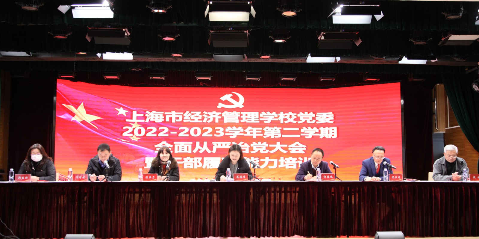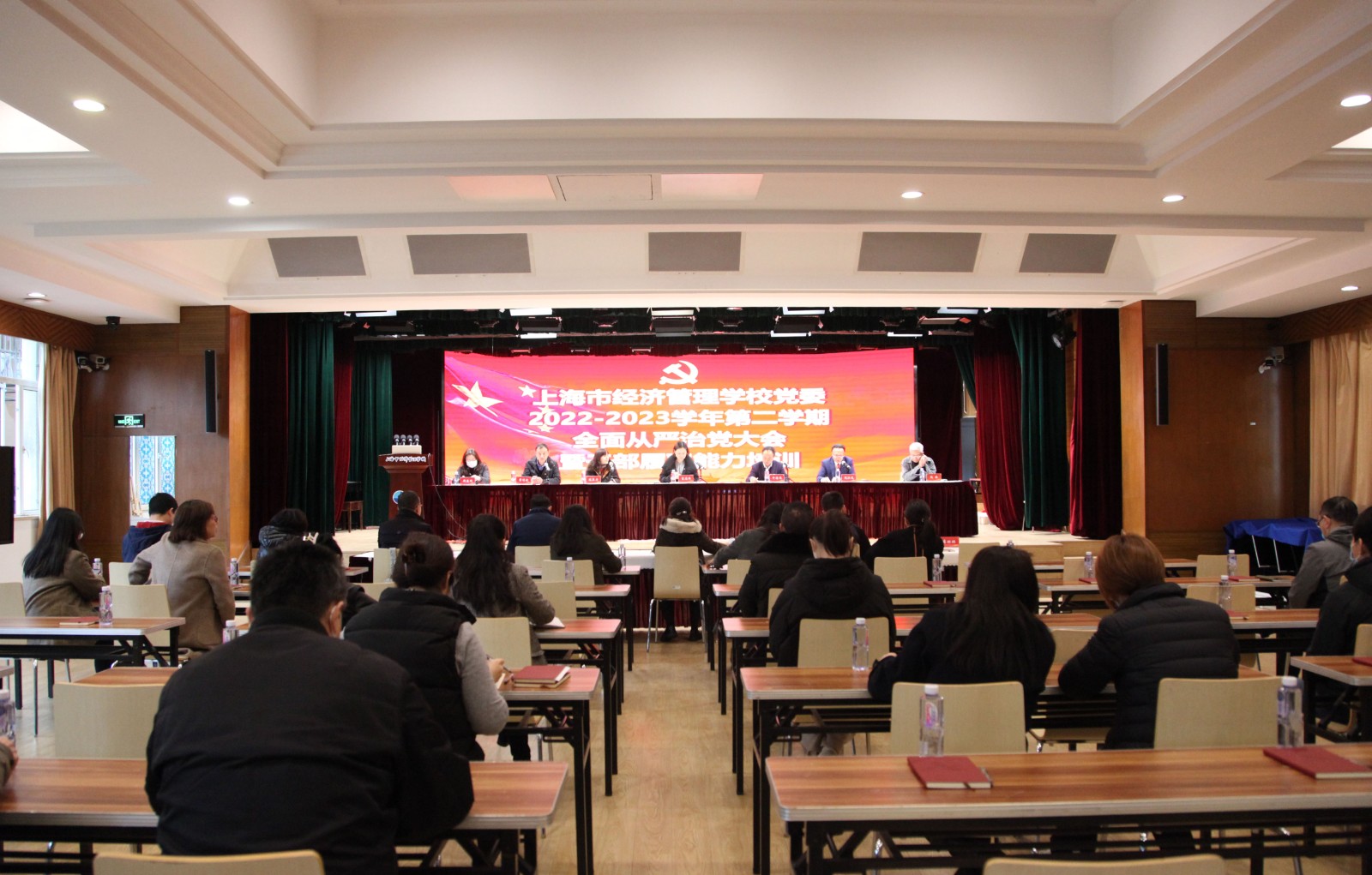3月17日下午,上海市经济管理学校党委2022-2023学年第二学期全面从严治党大会暨干部履职能力培训顺利举行。上海第二工业大学领导出席,上海市经济管理学校领导班子、中层干部、党支部书记、人事处、财务处、教务处、后勤保卫处、信息技术管理中心、团委、工会、项目管理办公室等部门教职工参加。