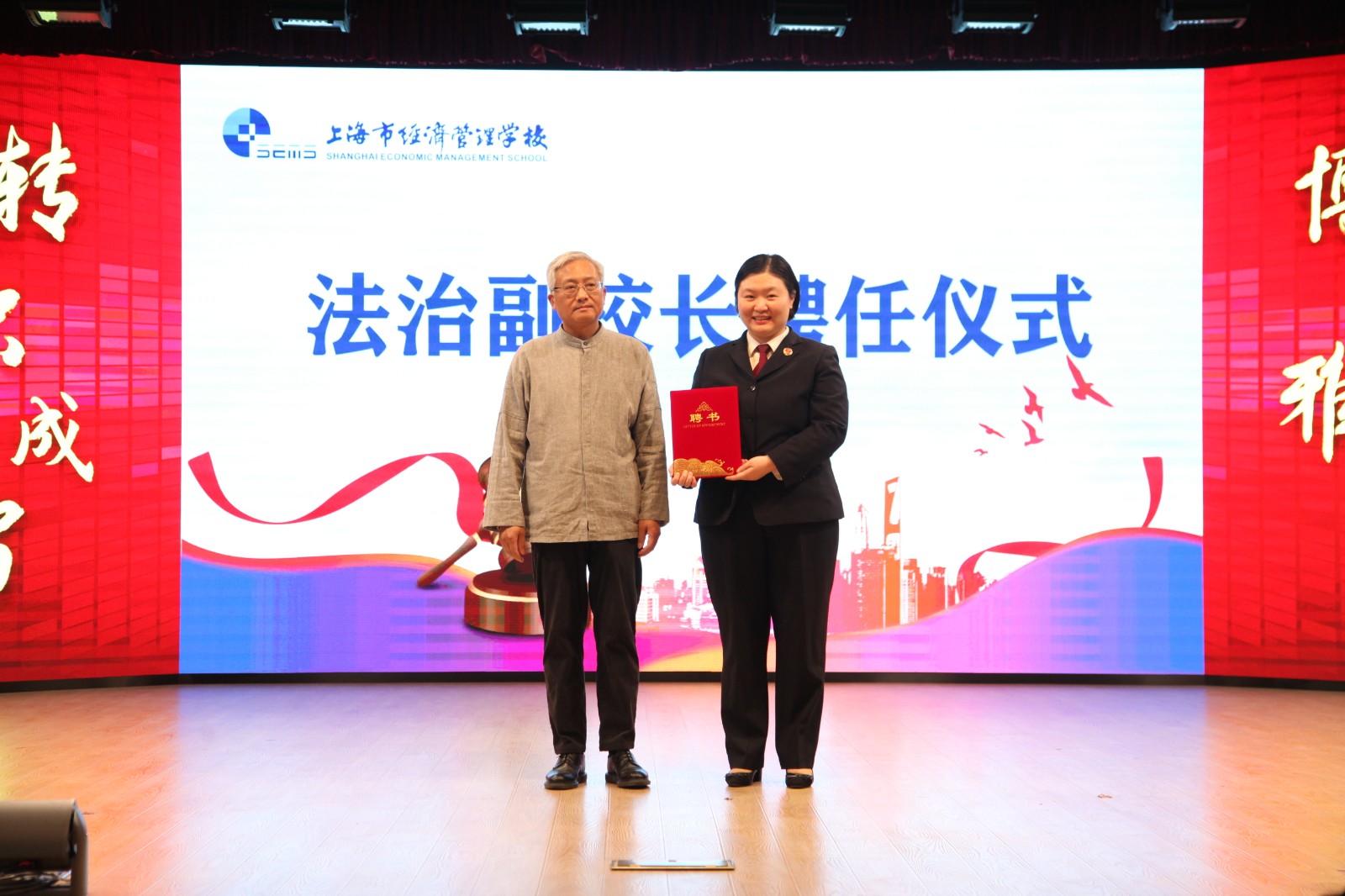 活动中,沈林副书记致辞。我校重视青少年法治教育,通过多元路径,增强学生法治安全意识,提升自我保护能力。学校聘请王蕾检察官为“上海市经济管理学校法治副校长”并颁发聘书。