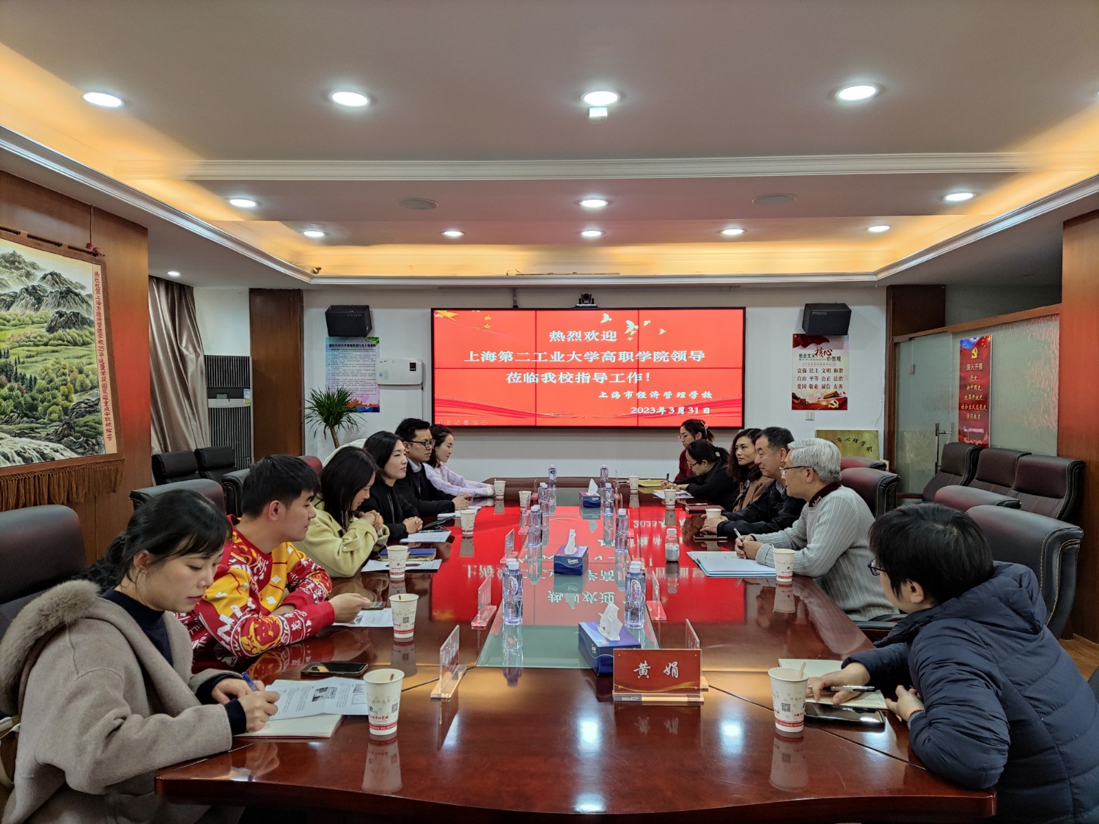 3月31日下午,上海第二工业大学高职学院党总支副书记徐孝蕾、组织员史飞、学工办公室主任马爽、学生党支部书记杨超杰、分团委书记龚匡满、资助兼易班专员徐秋叶、学风兼海外项目专员胡启芸一行来我校考察调研,就深化中高职贯通协同育人开展交流座谈。我校党委书记常峥斌、党委副书记兼纪委书记沈林、学生工作处主任石婕健、团委书记朱婉霞、团委副书记兼易班专员董佳慧、社团管理专员黄娟出席。会议由校党委副书记兼纪委书记沈林主持。