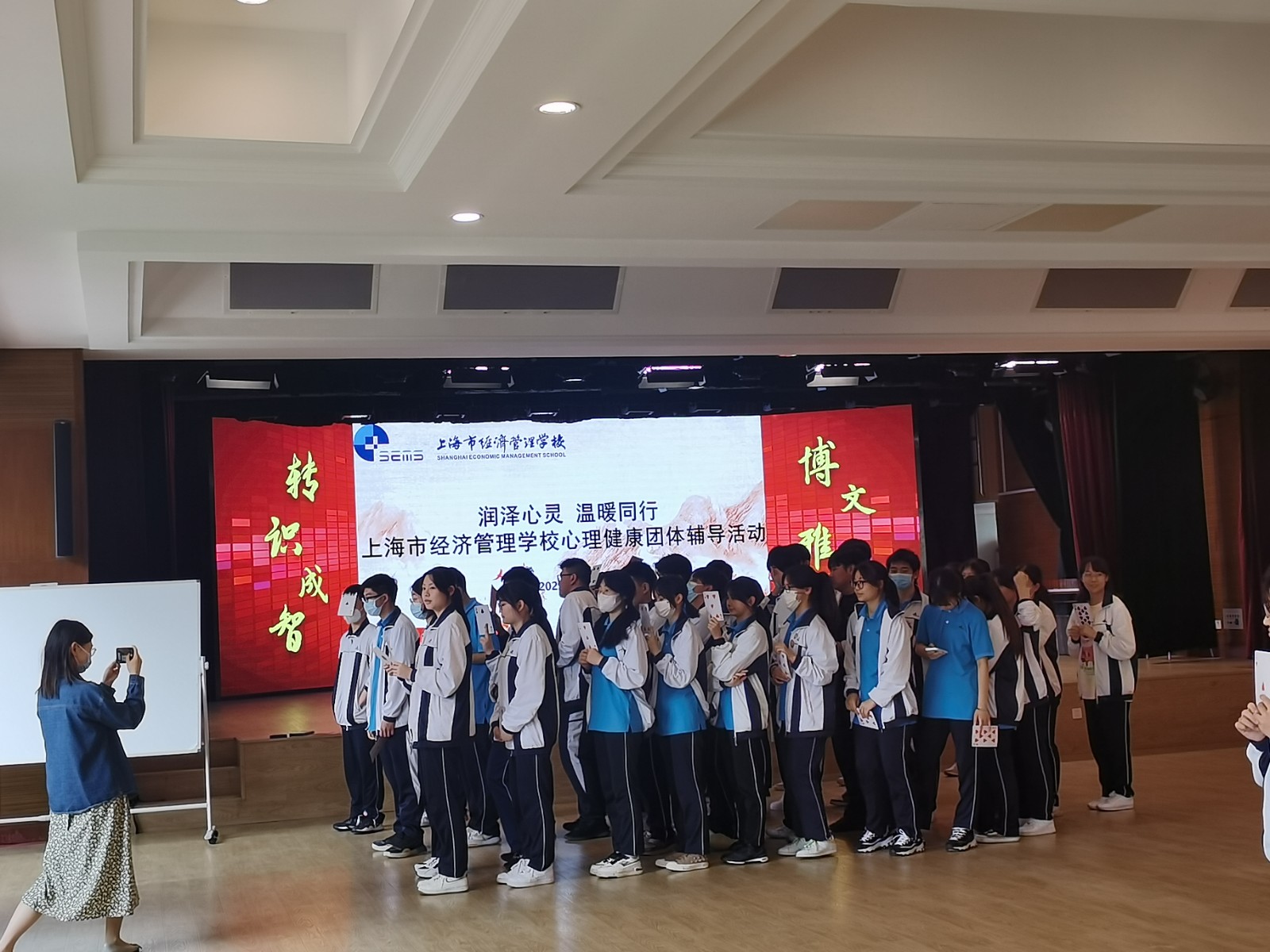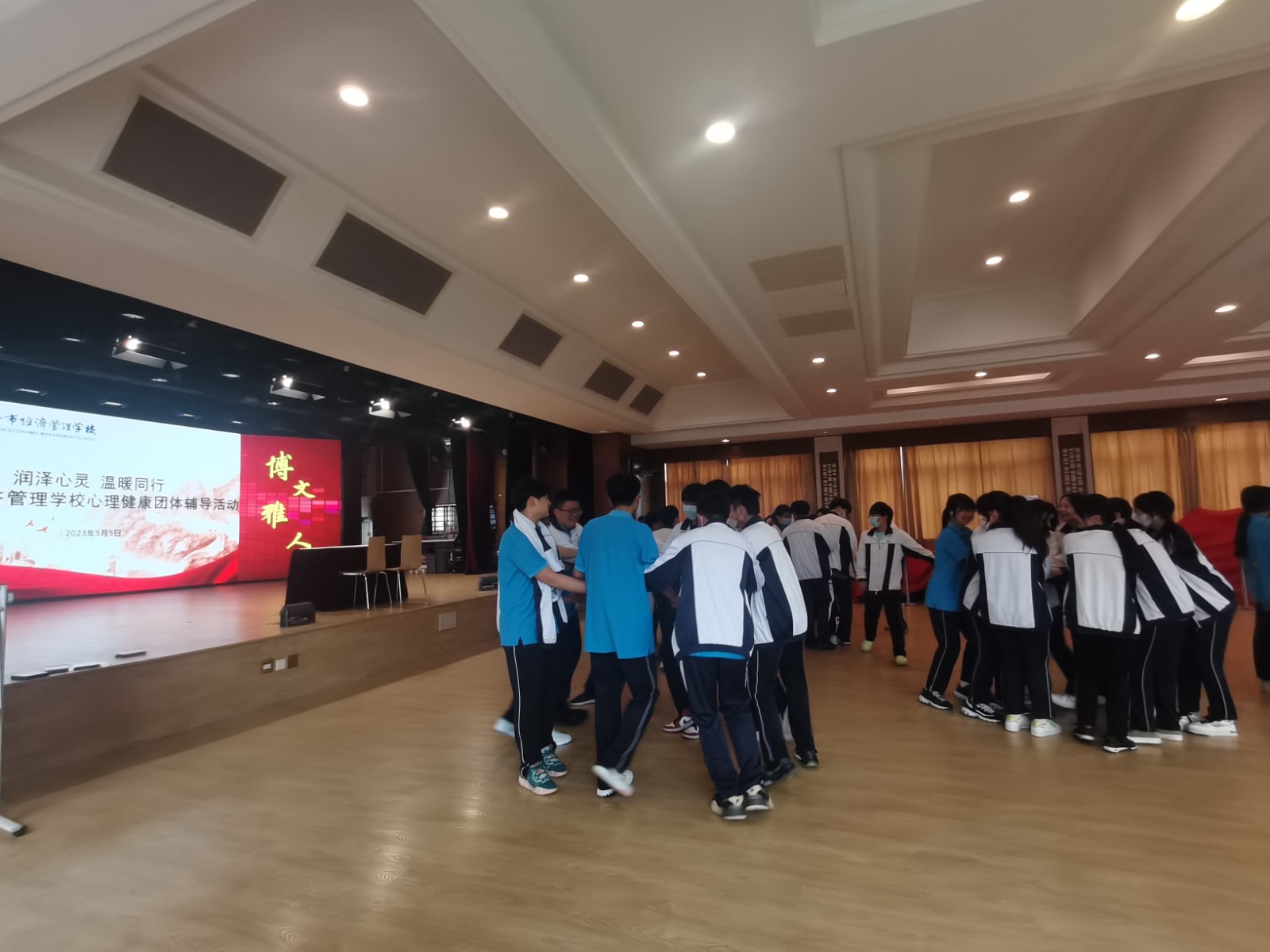 5月5日下午,我校组织开展了以“新朋友 心交流”为主题的解忧健康日团体辅导活动,旨在增强同学们沟通与合作意识,掌握人际交往技巧,构建和谐人际关系。活动特邀上海洄澜心理咨询中心特聘讲师、医学心理学博士、心理学副教授蔡文鹏老师带领同学们在团体活动中体验互动模式对人际关系的影响。