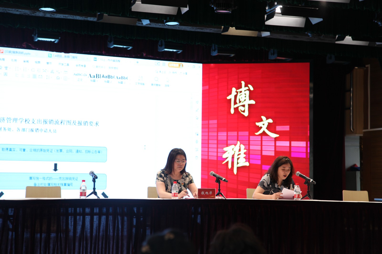随后,副校长钱旭华主持了自查自纠工作培训会。培训会上,项目管理办公室负责人谢梅英解读了自查统计表填写方式及有关注意事项,财务处主任郑晓华强调了经费管理规范要求及有关注意事项,党办、校办主任王健鸣对制度修改工作要求及有关注意事项进行了说明。