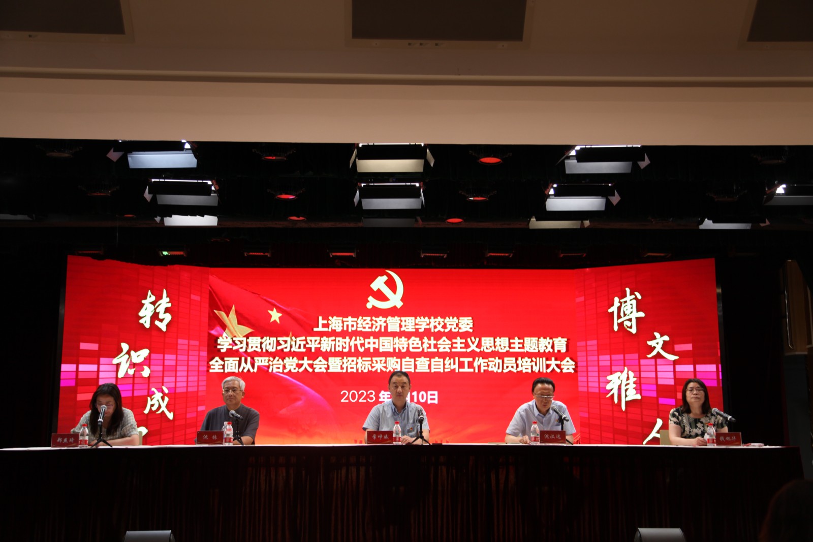 为进一步推动学习贯彻习近平新时代中国特色社会主义思想主题教育走深走实,7月10日下午,学校组织召开全面从严治党大会暨招标采购自查自纠工作动员培训大会。会议由校党委副书记、校长沈汉达主持。