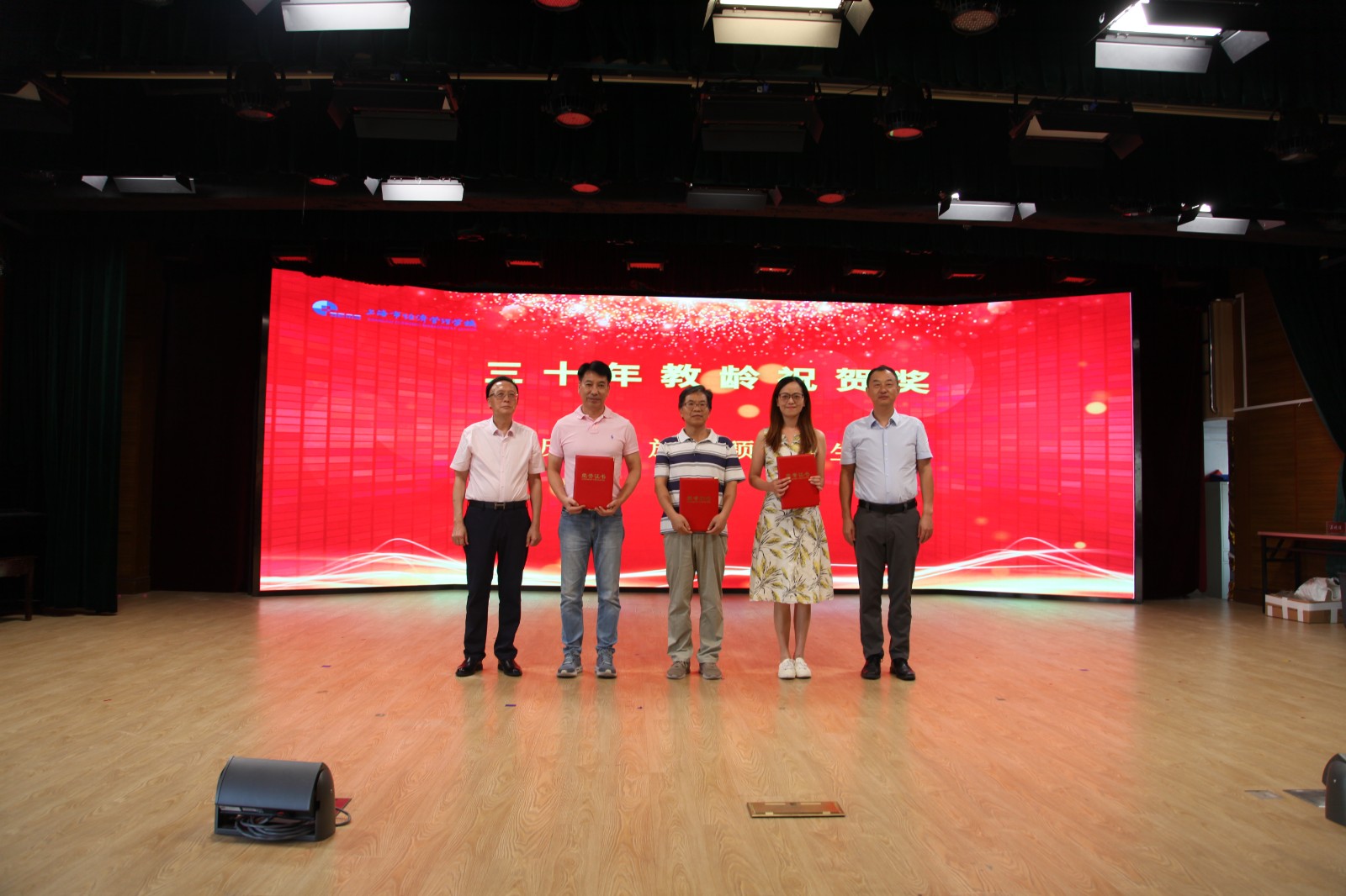 会上,学校向施颖、宋庆华、柳生开三位教师颁发学校教师30年教龄祝贺奖。