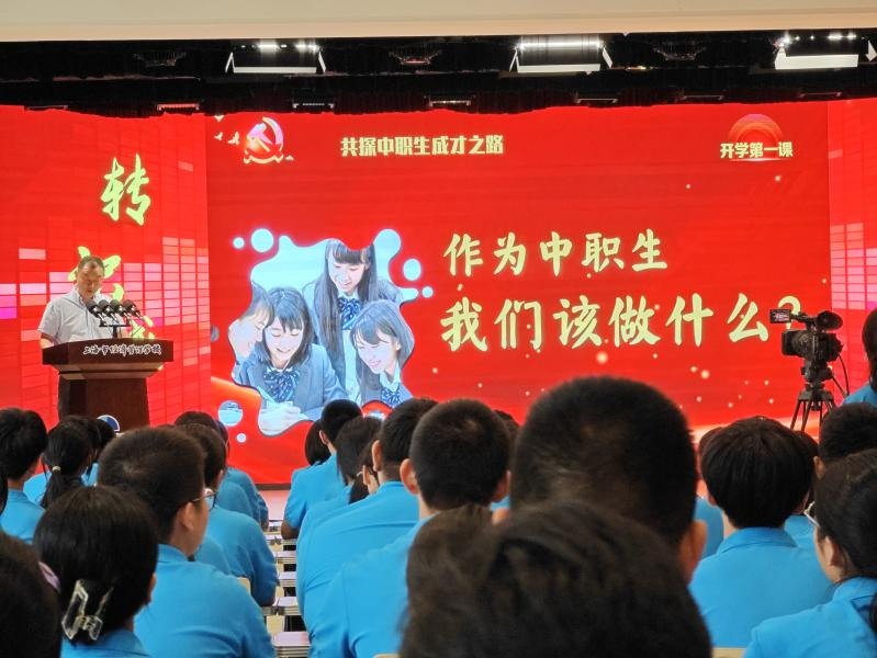 常书记以“共探中职生成才之路”为题,从中国共产党带领中国人民取得的伟大成就,国家发展对新时代青年的期望,学校发展历程及取得的成绩、学校优质资源、学校毕业生就业升学情况等方面,给全体学生上了生动、深入、全面、精彩的一课,并与讲座现场的同学们进行互动交流。常书记结合职业教育和学校发展前景对全体学生提出了殷切的期望:一是坚持理想与时代同行,厚植青春向党、强国有我的家国情怀;二是坚持理想与责任同行,担当社会安定、国家富强的社会责任;三是坚持理想与崇德同行,砥砺坚韧不拔、追求卓越的良好品质;四是坚持理想与创新同行,锤炼求真务实、开拓进取的工匠精神;五是坚持理想与健康同行,涵养积极健康、自强不息的心理素质。常书记的勉励真挚朴实,语重心长,大家体会到的不仅是作为一名校领导的悉心指导,更是作为一位引路人的深刻教诲。