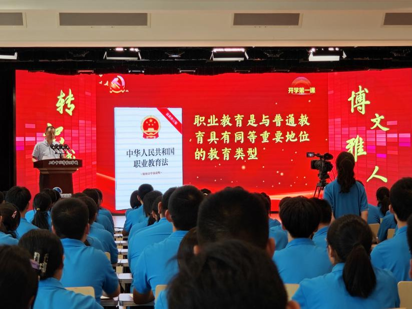 为帮助我校全体师生在新学期树立理想信念、明确职责使命,9月21日下午,我校党委书记常峥斌为全校师生讲授“开学第一课”。授课采用线下线上相结合的方式进行,在学校大礼堂设主讲堂,新生代表现场听课,其余师生在教室观看直播。本次活动由学生工作处主任石婕健主持。