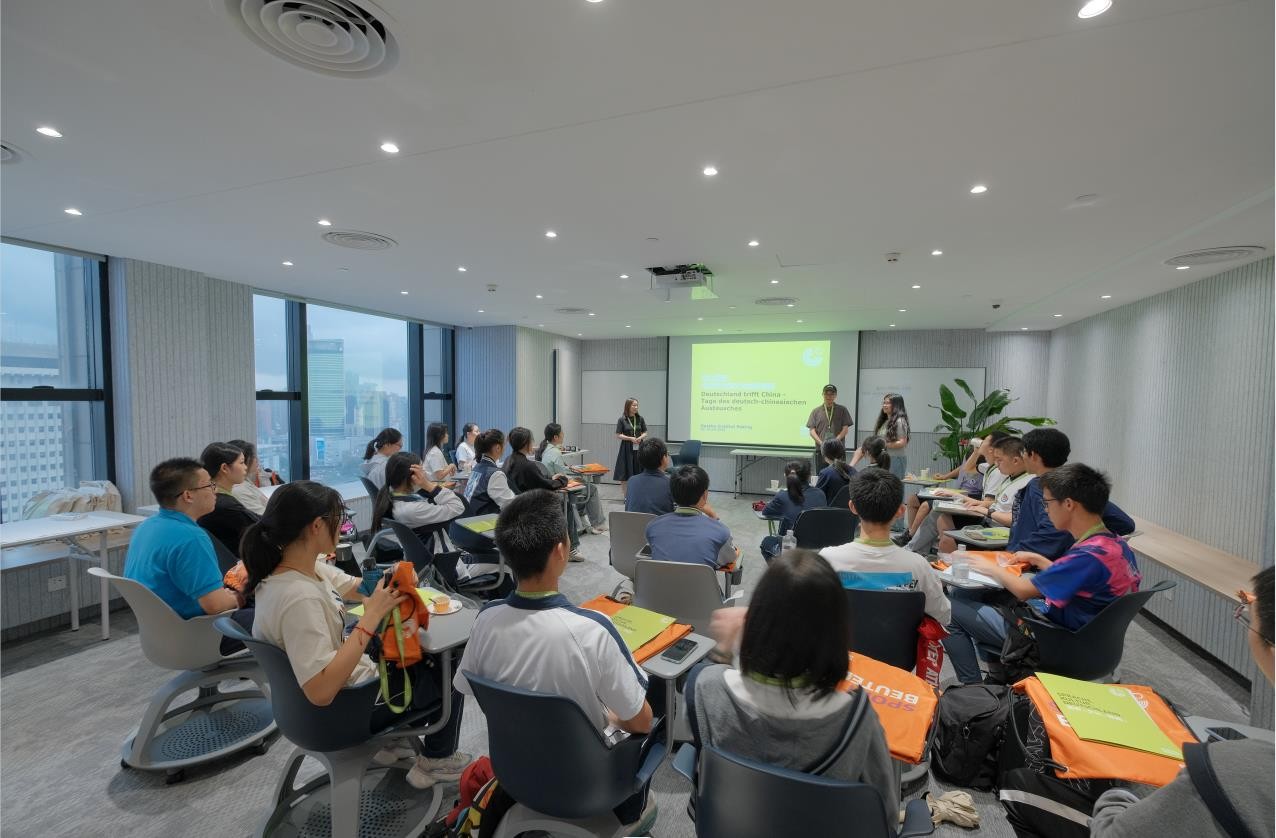 活动一开始,歌德学院的老师首先向同学们介绍了整场活动的流程和注意事项。在接下来的活动中,同学们和老师们前往上海大厦开始了城市探索,参加了以“可持续城市与绿色创新”等为主题的讲座,聆听了“与德国友人交往的技巧以及中德文化之间的差异”等主题的跨文化培训,与在德国科隆学中文的德国中学生进行了线上交流。