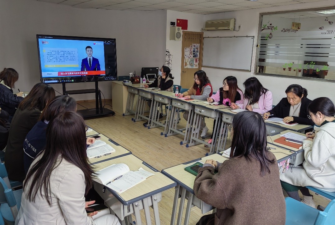 会上,全体党员同志首先观看微党课集中学习、深刻感悟习近平文化思想明体达用、体用贯通的丰富内涵。结合商务系的专业特色,董凤艳、陆丽娜、王晓颖三位党员教师分别从外语专业教学、对外国际交流、创新创业指导三方面具体分享了“中华文化元素融入语言教学”“优秀传统文化与新时代科技创新融合”以及“加深中华文化理解,提升跨文化交际能力”的经验。随后,党员教师围绕学习主题,结合教育教学交流如何增强文化自觉、坚定文化自信、担负文化使命。