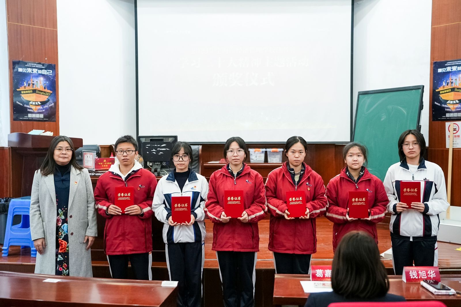 本次读书节以学习党的二十大精神为主题开展了一系列相关活动。颁奖仪式上,55名学生荣获积极参与奖、24名学生荣获优秀作品奖。