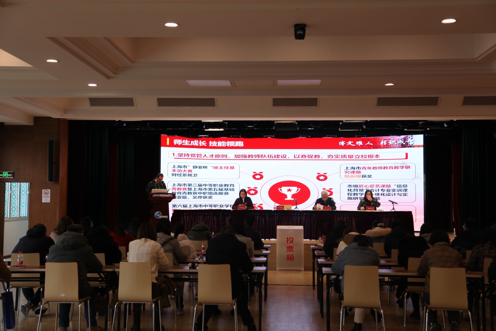 学校中层随后开展述职汇报,汇报会上,中层干部们通过图文并茂的演示,详实地展示了各领域工作的具体数据和成果,深入浅出地汇报了各自分管领域的工作亮点和取得的进展,也为学校未来的发展积极建言献策。